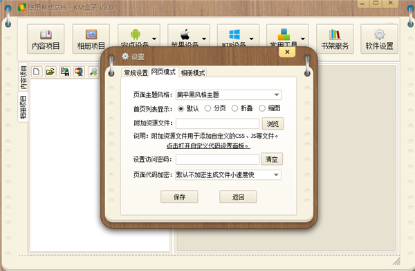 KM盒子是一款支持文字、图片、表格混合排版的安卓手机APK电子书制作软件,编辑器支持插入超文本链接和视频链接,生成的APK电子书支持同时播放音频文件实现边看边听。软件支持APK相册生成、微书刊制作、生成chm电子书,方便移动阅读和知识管理。