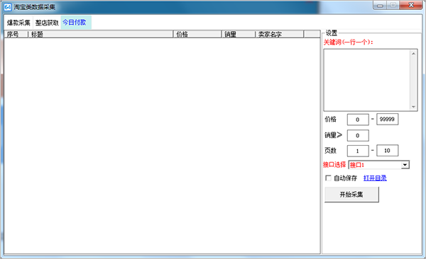 2、进入今日付款数据采集界面,该界面可以输入关键词进行数据采集。