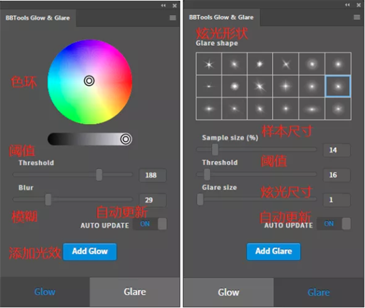 自动更新(“发光”和“眩光”): 两种效果均内置有自动更新功能,以使工作流程更方便。