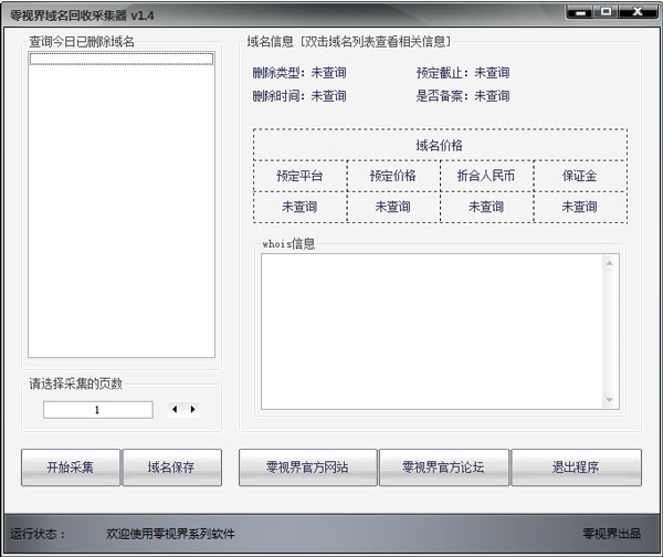 零视界域名回收采集器能够快速采集今日回收域名,支持多线程批量采集,支持域名预定价格、删除时间、是否备案等相关信息查询。