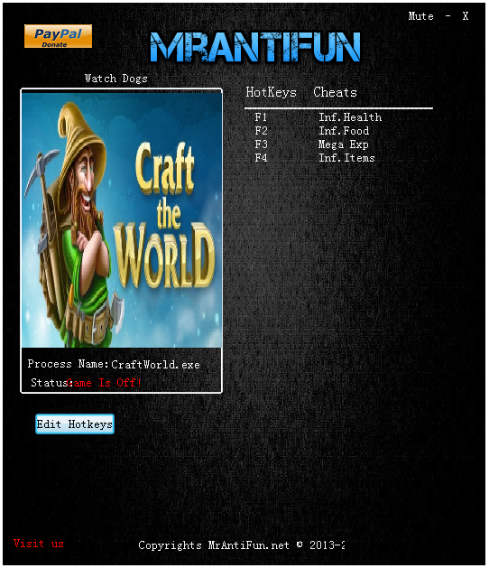 运行游戏,打开打造世界四项修改器,按相应的热键即可。