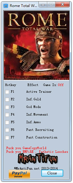 罗马全面战争六项修改器是该款同名经典战争策略类游戏——《罗马:全面战争》的辅助工具。该款罗马全面战争修改器可进行无限金钱、无敌模式、无限子弹等6项操作设置辅助,让你更轻松的进行游戏体验!