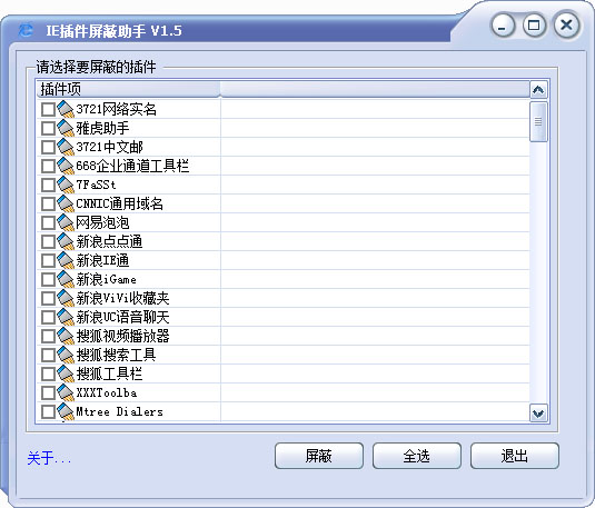 IE插件屏蔽助手是一款免费且功能强大的浏览器插件屏蔽软件,现在在上网过程中总会遇到各种各样的插件提示用户安装或强制安装,严重影响用户的浏览体验,使用本软件可以轻易屏蔽各种插件,让您在上网过程中通行无阻。