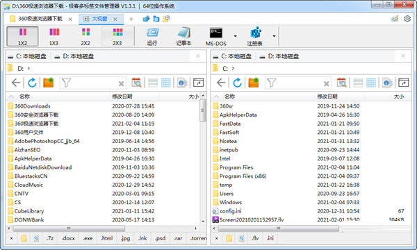 【大视窗多屏文件管理】同屏多达6个窗口文件管理,满足您的控制需求。