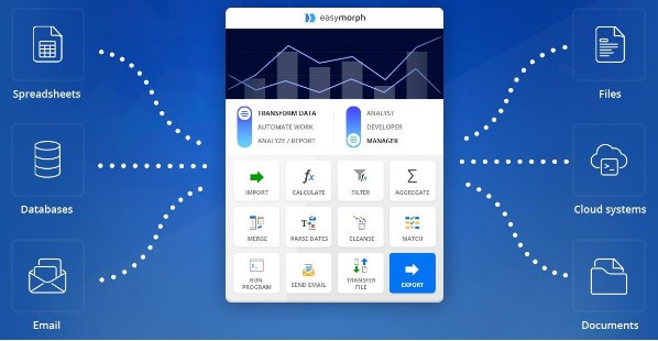 3、进出口easymorph让你从各种来源的数据合并。如果需要,导出转换结果。支持的数据源的当前列表包括本地数据库访问、Oracle、SQL Server、MySQL、SQLite。