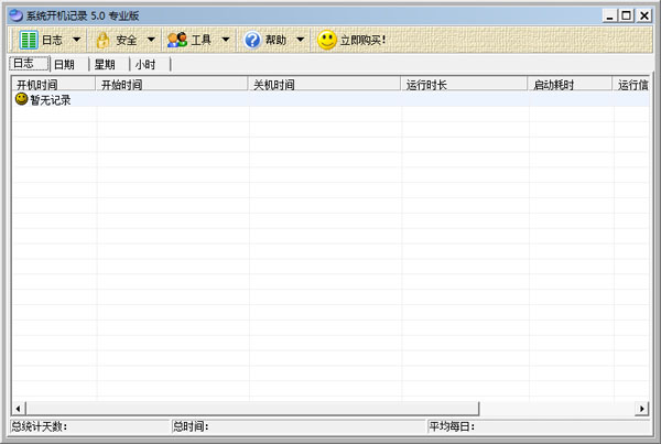 系统开机记录能够记录您的电脑打开和关闭的时间,并根据时间信息分析电脑的使用状况。记录的内容包括:电源开启的时间、开始使用(用户登陆)的时间、关闭时间、使用时长、启动花费时间、登陆用户,并且给出譬如“运行正常”、“非正常关机”或是“进入休眠”等简洁的系统运行状态信息。