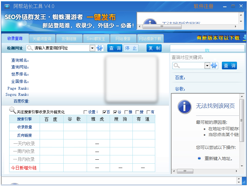阿帮站长工具箱可以为你提供域名质量跟踪服务,是一款由阿帮网络工作室成员开发的专为广大站长们研发的站长工具箱。如果你是站长,希望能够得到各种贴心的服务,那就下载站长工具箱来试试吧。