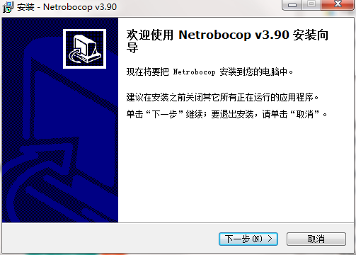 1、将网络执法官下载下来,并解压到当前文件夹中,点击其中的NetrobocopSetup_v3.90.exe应用程序,进入安装向导界面,接着点击下一步。