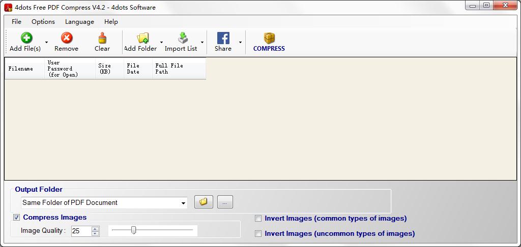 还可以拖放要压缩到应用程序主窗口的pdf文档。