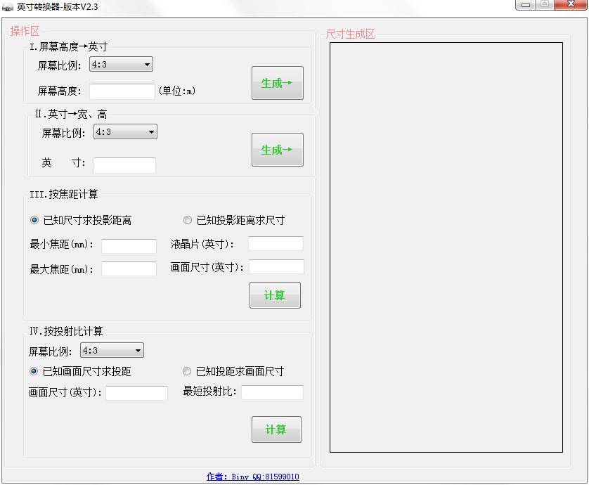 万能投影计算器(英寸转换器)官方版是一款专门为多媒体展览馆、规划馆、地产行业展示厅设计的投影机选型和投影机投影距离的计算、投影机镜头的选取工具,体积小巧,功能强大,并且计算的结果非常的精确,能够帮助大家计算精确到2位,,非常适合有投影机基础,能够通过baidu找到投影机参数的工程技术人员使用。