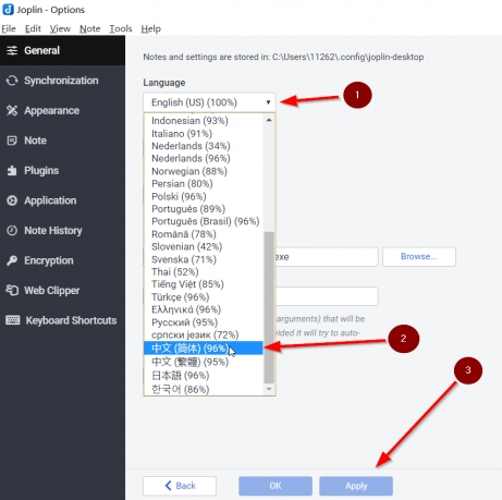 在设置页面左侧选择“General”,在右侧的第一项“Language”里面,选择“中文(简体)”,点击下方的OK即可。