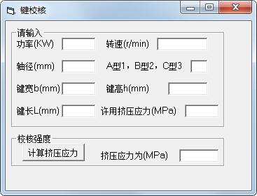 键校核计算软件是一款能够帮助用户计算键的强度校核的软件,通过对功率、转速、轴径等基础数据的输入,能够得到校核强度和挤压应力数据,是一款小巧的软件。
