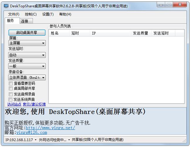 DeskTopShare是一款支持多人远程桌面、虚拟投影仪的屏幕共享软件,可以在局域网内远程显示对方机器的桌面(支持远程控制)。