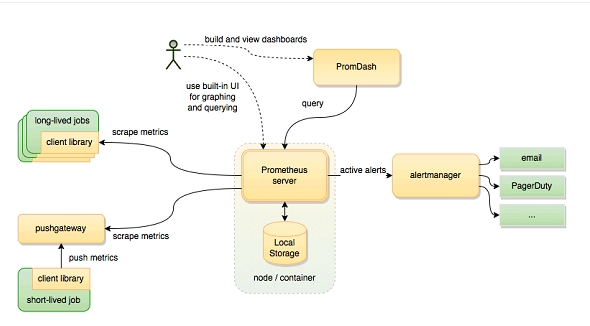 现有的出口商允许将第三方数据桥接到Prometheus中。示例:系统统计信息,以及Docker,HAProxy,StatsD和JMX指标。