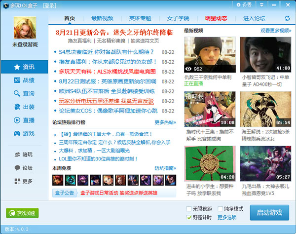 英雄联盟盒子是多玩受官方认证发布的游戏辅助工具,英雄联盟盒子提供多种多样的游戏辅助功能,英雄联盟盒子让你的游戏生活更加惬意,英雄联盟盒子完全免费。