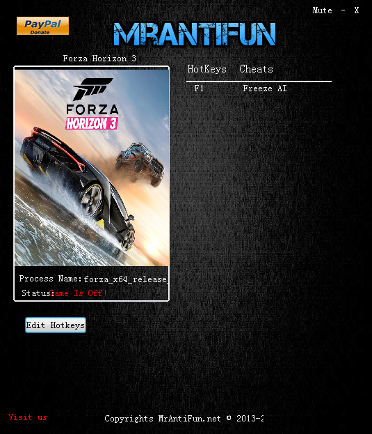极限竞速地平线3修改器是一款针对《极限竞速:地平线3》所推出的游戏作弊器。这款极限竞速地平线3修改器可进行冻结AI的操作辅助,让你更轻松玩游戏!