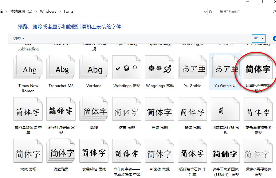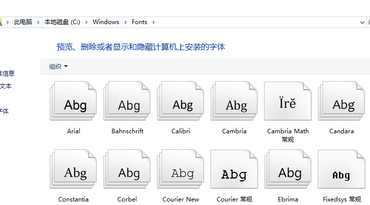 1、打开Win10的字体安装文件夹,可以双击打开这台电脑--》打开C盘--》打开Windows--》打开Fonts;也可先打开计算机,在计算机地址栏上直接拷贝“C:WindowsFonts”路径,回车打开Win10字体文件夹。如下图所示。