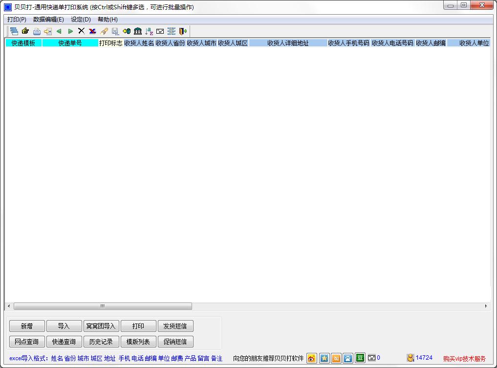 用户通过贝贝打通用快递单打印系统还可以直接输入或从excel中导入客户地址信息,然后进行批量打印,并可以在线发送发货短信、促销短信。软件中还可以在线查询快递网点,查询快递物流信息。