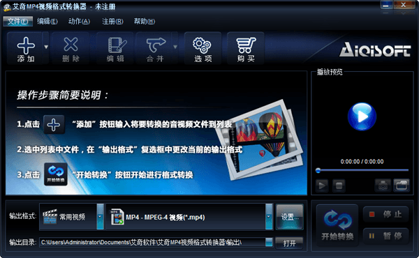 艾奇MP4视频格式转换器是一款功能齐全、操作简单的MP4全能转换器,它可以帮助用户把当前任意一个主流的视频格式转换快速为mp4格式,而且还有简单的编辑功能。