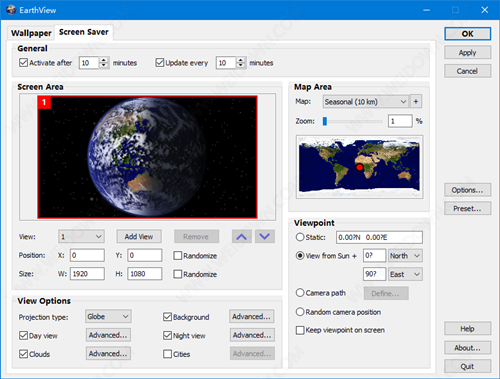 EarthView绿色安装版是一个好看的动态桌面背景及屏幕保护程序,EarthView能够让我们俯瞰地球,并且使用EarthView还能看到全球人口稠密区,而且EarthView的画质非常的高,喜欢的朋友快来下载吧。
