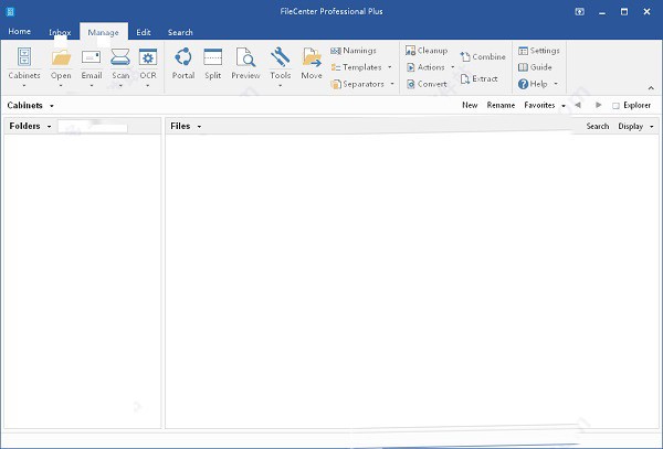 FileCenter将可能被认为是几个不同程序的内容组合到一个单一的,流畅的界面中。您可以轻松地从一个任务转移到另一个功能,实现许多与日常文件相关的工作,而无需离开界面。您可以在这里看到FileCenter的主要部分,并向您显示要访问的功能的位置。如果您查看FileCenter界面的顶部,您将看到一行四个选项卡:文件、管理、编辑和搜索。