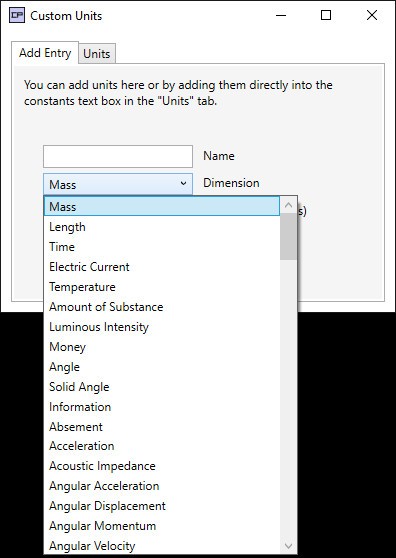 你可以添加自定义函数、单位和常量。这些都会被持续保存,所以你不必一直把它们放进去。