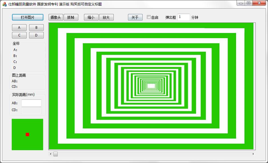 仕郎瞳距测量软件从名字就可以知道这款软件允许用户测量自己的瞳距,本软件使用很简单,可以将自己的照片添加到软件测量,也可以使用摄像头步骤自己的眼睛,从而在软件上捕捉图片,用户可以在图片上手动标注ABCD四个点,随后软件会自动根据你设置的点读取实际距离,软件支持缩小放大,支持自启设置,支持弹出框设置,需要的朋友可以下载体验!