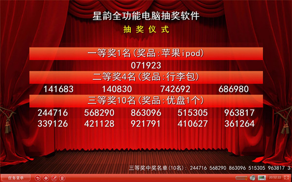 系统拥有强大的显示中奖名单滚动字幕功能,可任意设置滚动字幕的字体和背景颜色等多种显示特效。