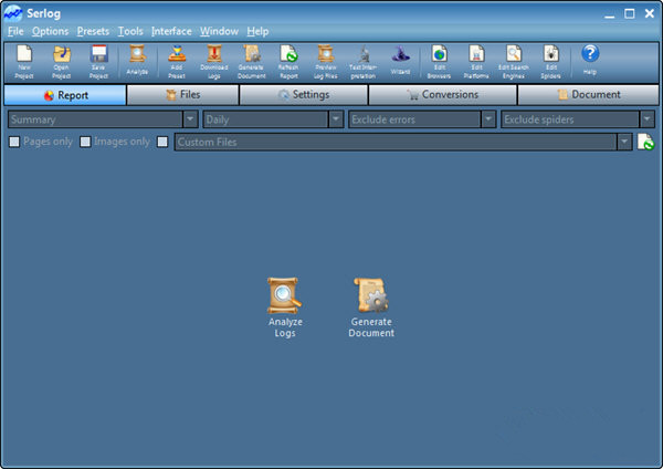 Serlog 是一个功能全面的服务器日志分析器,软件可以回答一些关键的营销问题,还包括所有标准统计信息和报告。这些统计信息和报告是从会话、访问者、浏览器、平台、蜘蛛、带宽、国家、进入/退出页面等得到的。