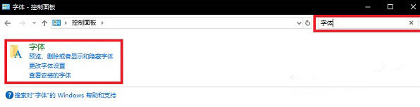 1、进入控制面板,在搜索栏搜索字体,点击进入。