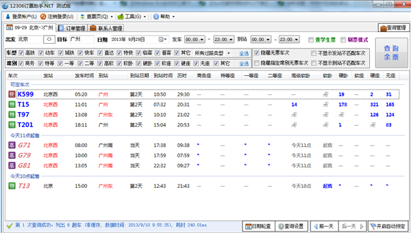 支持过滤无需要席别车次(新功能!2.0版中加入!)