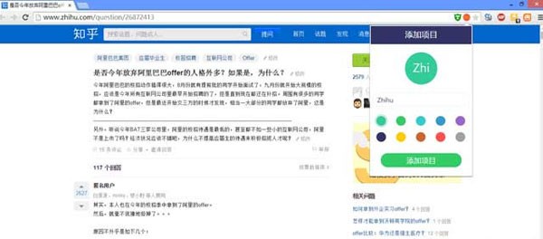 10、当你打开新的页面的时候,比如你在浏览知乎,看到一个不错的话题,然后你可以看到地址栏有infinity图标,点击下就可以添加到infinity新标签页。如图所示: