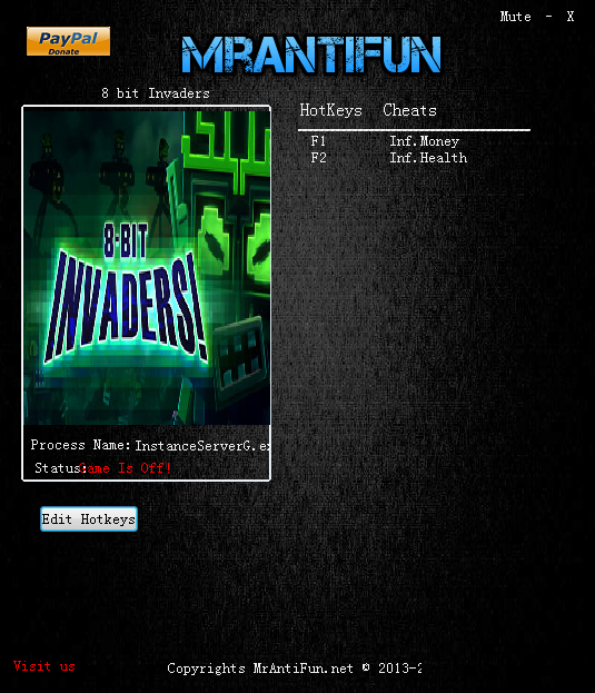 运行游戏,打开8位侵略者两项修改器,按相应的热键即可