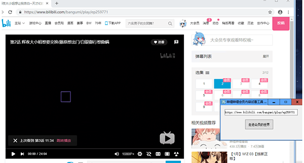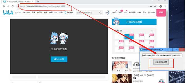 4、复制番剧链接粘贴到工具中,点击走进会员世界。