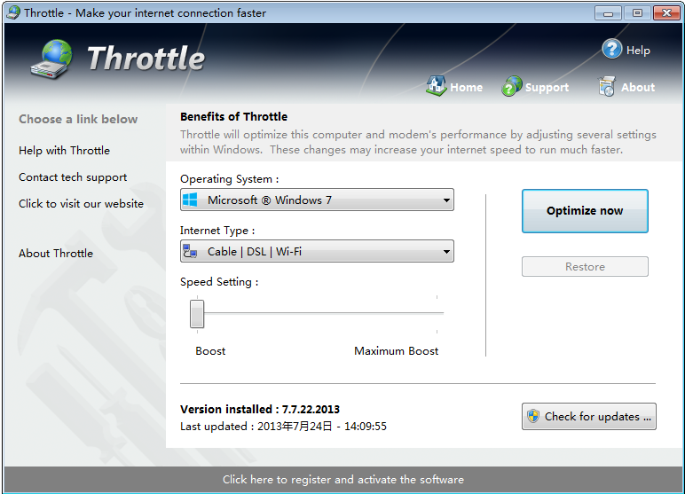 使用Throttle对您的计算机和调制解调器进行安全和永久性更改是完全安全且永久性的,运行一次并且您的Internet永久更快。