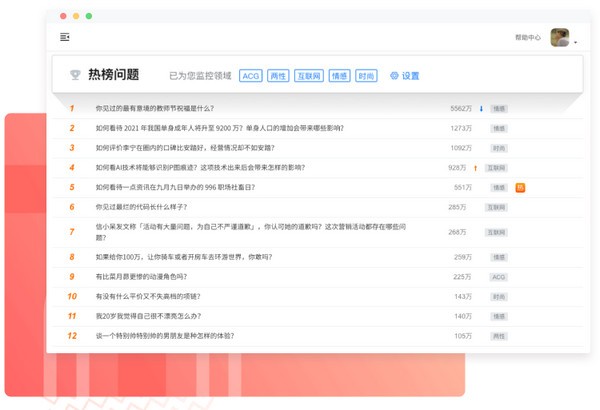 2、监测问题功能,用户可以在知乎的热榜页,搜索页,详情页等页面监测问题的变化趋势,如果浏览增量,回答数,赞同数等。