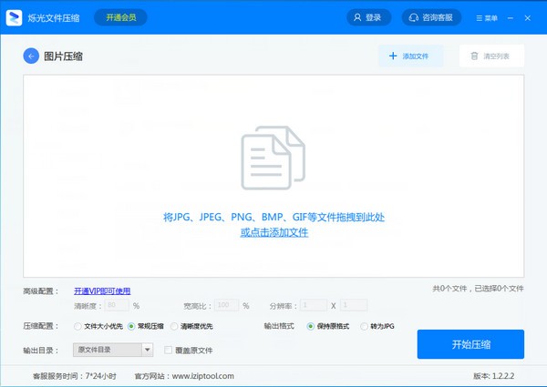 打开客户端,选择需要压缩的文件类型,添加文件即可快速压缩。