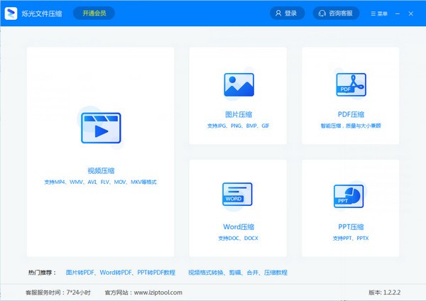 烁光文件压缩官方版是一款专业实用的压缩软件,支持多种压缩功能,包含了视频压缩、图片压缩、PDF压缩、Word压缩、PPT压缩五大压缩功能,操作的界面简洁直观,选择对应的压缩功能即可进入独立的操作窗口,导入要压缩的文件,然后设置压缩方式、输出目录以及其他基本参数,即可执行压缩。最大的亮点是可以批量压缩,方便快捷。