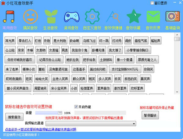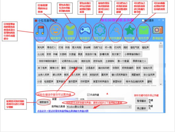 小红花音效助手是一款十分适合主播的音效软件,内置上千款音效,打开软件就可以直接使用,软件还可以从你经常使用的声音特效添加到采集界面 ,方便下次直接点击使用。软件支持声卡通道设置,可以自定义的添加音效,,有需要的小伙伴快来下载使用吧!