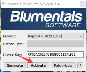4、再选择Rapid PHP 2020点击generate得到激活码;
