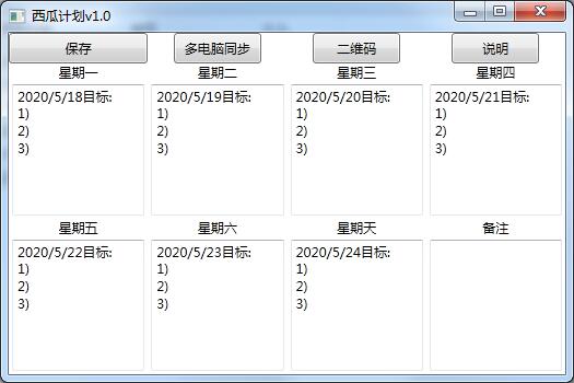 西瓜计划是一款非常不错的日程计划记录工具,能够帮助用户记录一周所有的日程计划,并且能够生成二维码让用户读取当日计划到手机,使用起来非常方便,有需要的用户不要错过了,欢迎下载使用!
