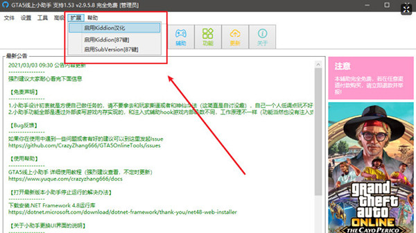 GTA5线上小助手是针对同名游戏设计推出的辅助工具,帮助用户修改游戏中的各种数值,降低游戏难度,更快通关。软件提供多项实用功能,如外置辅助、地堡刷钱、刷筹码、卖车刷钱等,且辅助长期更新,免费使用。