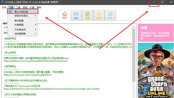 勾选这个后,每次点击小助手最小化会自动隐藏到托盘