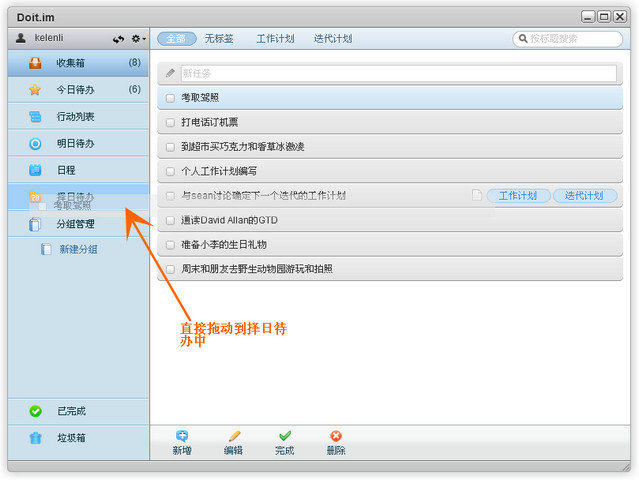 1、Doit.im 凝聚了GTD的基本原则,并且在执行GTD思想的过程中为用户提供了各种便捷的工具,引导用户更好的将GTD的思想和行为融入到实际的生活工作中。