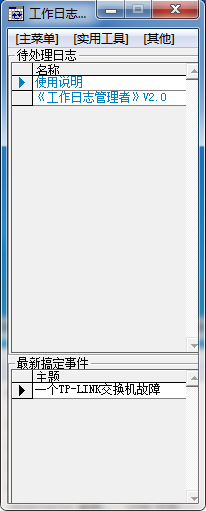 工作日志管理者是一款可以帮助用户进行日常工作整理的软件,可以帮助用户记录下将要做的事情,对做完的事情进行归档,方便年终的查询,事后的总结,并且可以对将要做的事情可以及时的提示处理,支持大量的存储,一个事件可以有500个字以上的描述和存储,可以存储10万件事件。