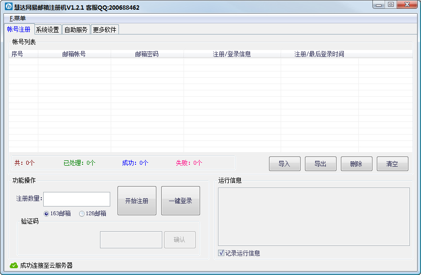 邮箱注册是一款采用高效的POST注册方式,成功率高达100%的邮箱注册软件,邮箱注册还接入了第三方远程图片打码系统轻松实现全自动注册模式,除此之外邮箱注册还支持一键批量登录防止注册的邮箱被回收。
