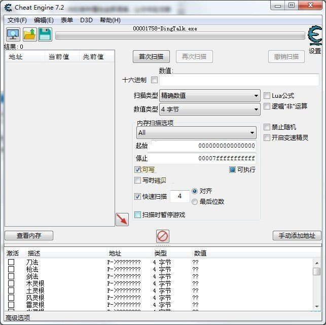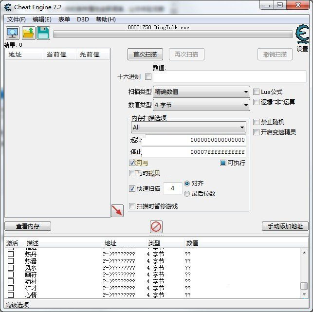 1、安装最新CE修改器“《Cheat Engine》v7.2汉化版==》点我下载”。