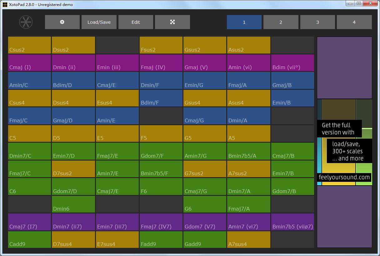 XotoPad是款页面简洁美观、上手极易操作的MIDI控制器工具,功能齐全,主要的目的就是为了将用户的Windows触控设备进行转换成为多种功能的音阶、和弦控制器等,并且可以对您的音乐想法进行实现。包括了对效果的控制操作,其支持300多个不同音阶,并且拥有四个页面供用户选择,每个页面最多可以包含18 x 18个打击垫,而且向导式的操作方式。