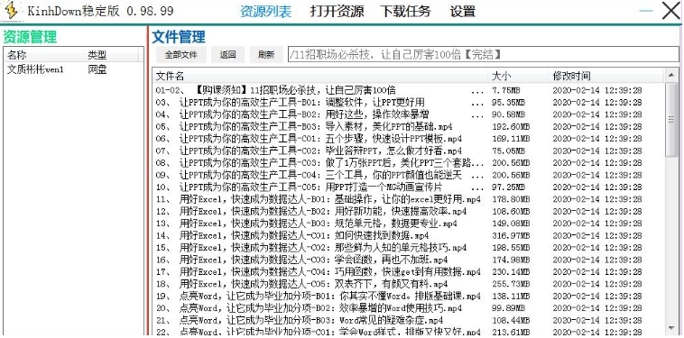 2、找到自己网盘中需要下载的资源,双击该资源。