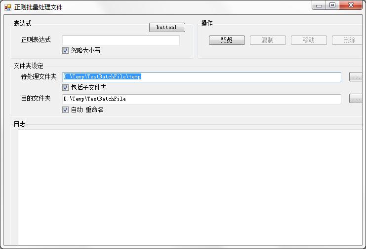 正则批量处理文件工具是一款利用正则表达式来批量处理文件的小软件,操作非常的简单,支持批量文件移动、复制、删除等等,能够节省你不少文件处理的时间,简单、快速、便捷,如果你电脑里面的文件够多,这个工具就很适合你。